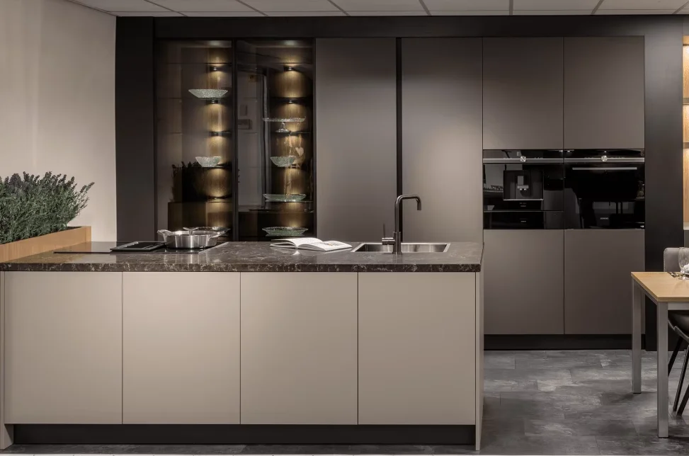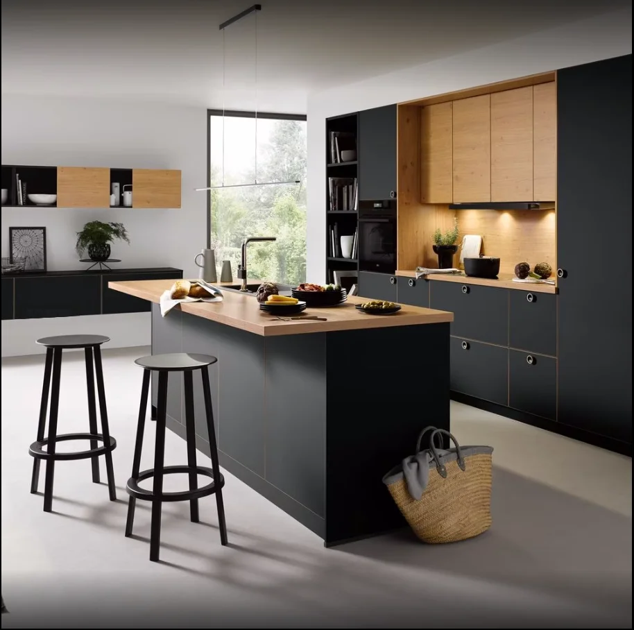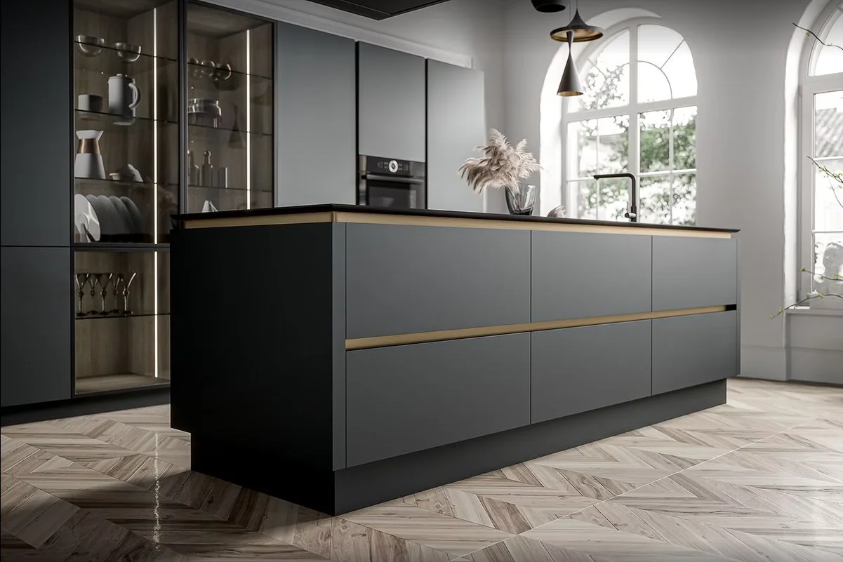 European Style Modern Custom Kitchen Cabinet in Black Matt Lacquer Handless Laminated Ready-to-Assemble Modular Islands