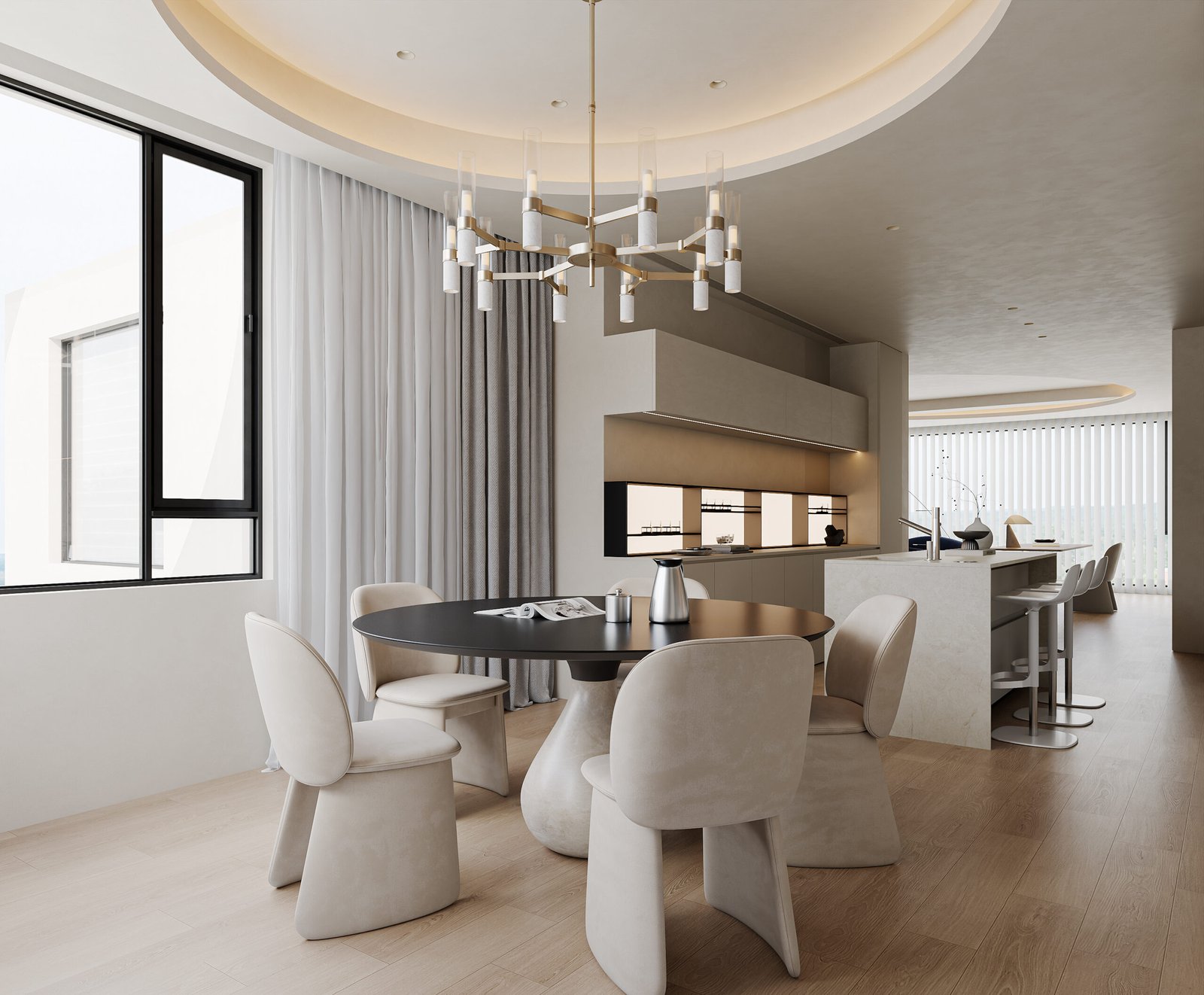 French Lift-Up Hydraulic Kitchen Cabinet Modular Cabinets French Cream Style White Curved Kitchen Cabinets Light Color Palette