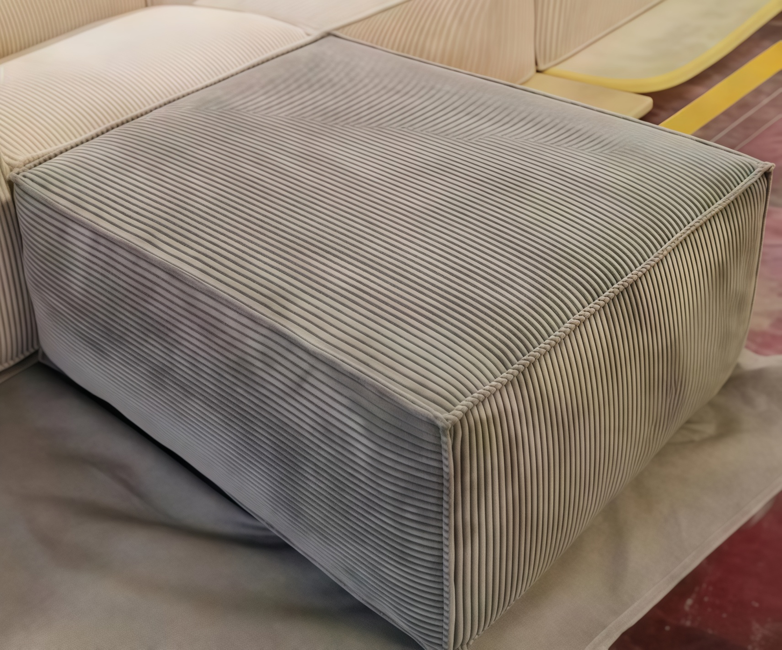 This vacuum-compressed tofu-shaped sponge sofa is made of corduroy fabric and filled with high-density compressed sponge.