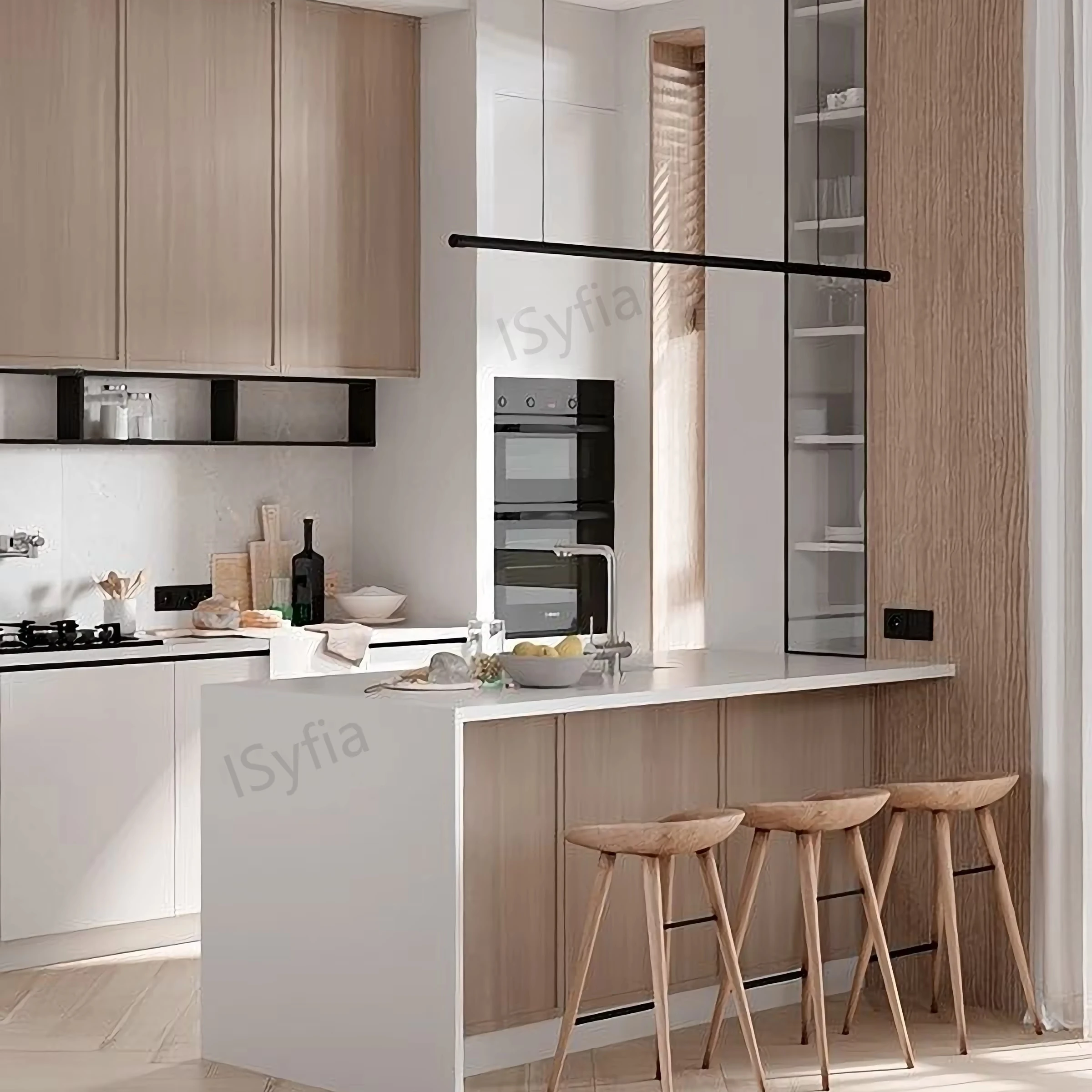 Modern Kitchen Island with Travertine & Wood Marble/Granite Countertop Breakfast Bar Stool Set Restaurant Villa Kitchen Cabinet