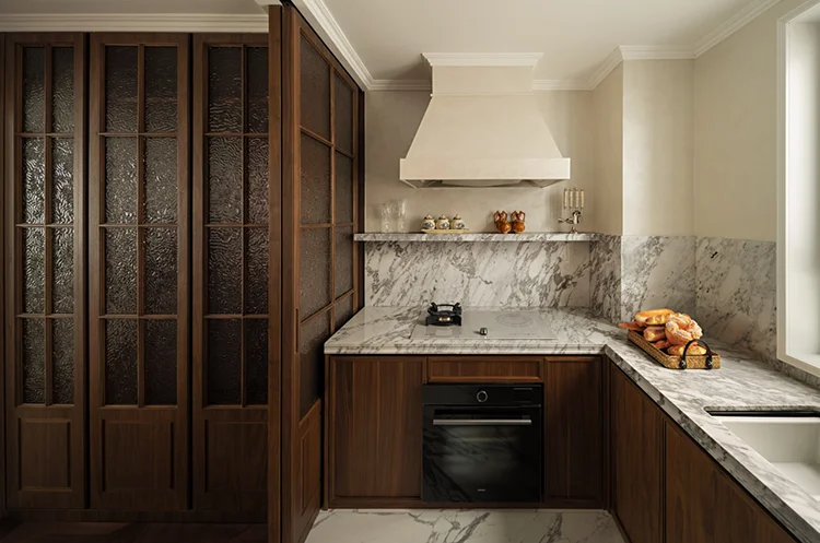 Modern Kitchen Storage Cabinet Wood Kitchen Cabinet Set Luxury Modular Marble Kitchen Cabinet Solid Wood High Quality Apartment