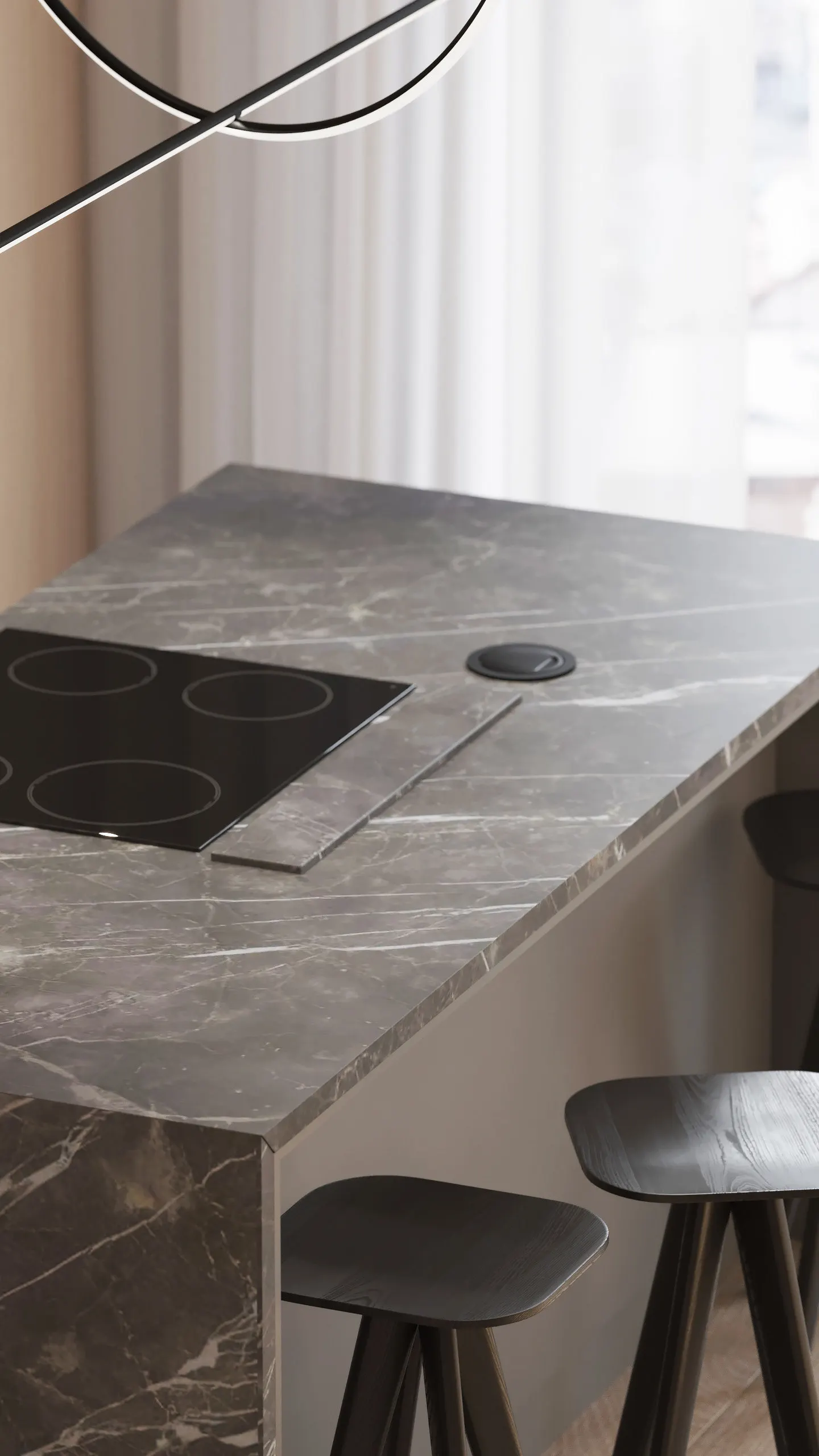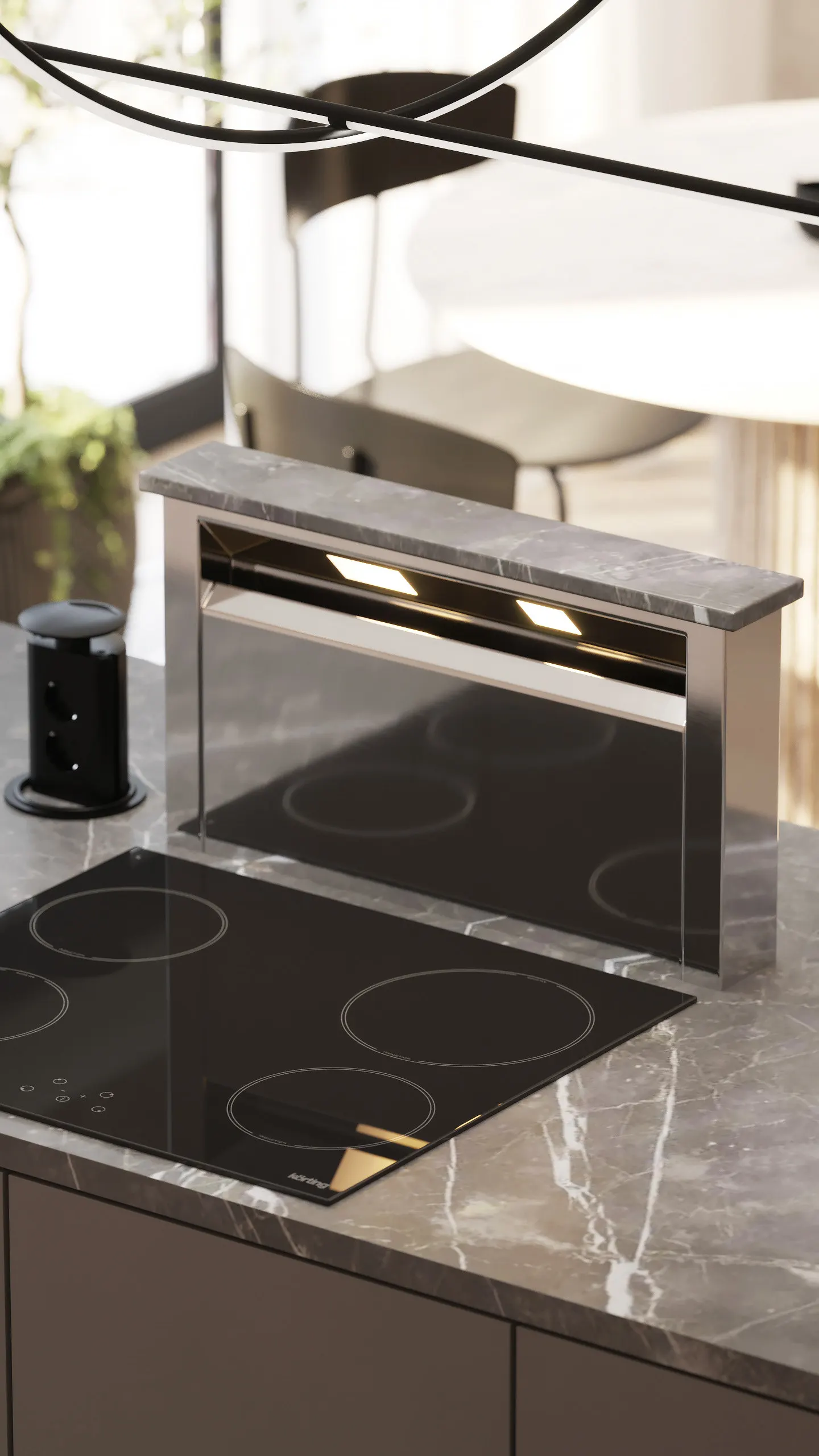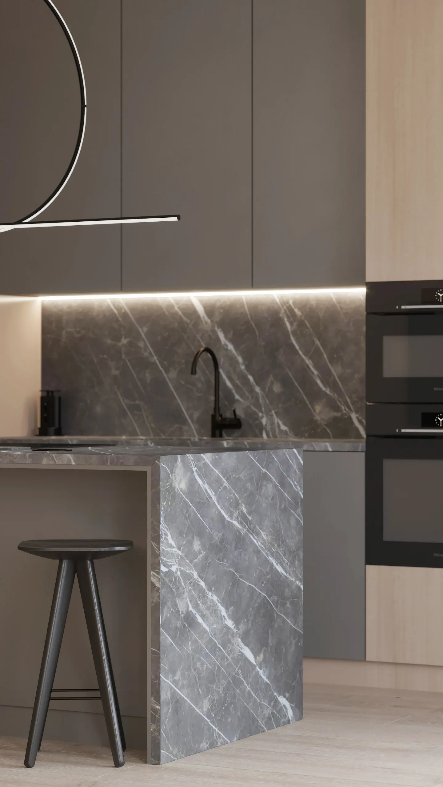 Modern Minimalism Villa Kitchen Cabinet Apartment Modular Cabinets Natural Wood Tone Kitchen Cabinet Electric Lifting Range Hood