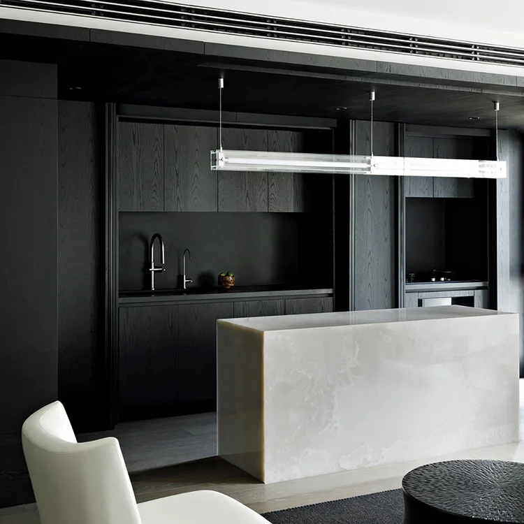 Modern Mminimalism Design Brown Acrylic Kitchen Wall Cabinet Two Tone Texture Wood Grain Complete Set Apartment Villa