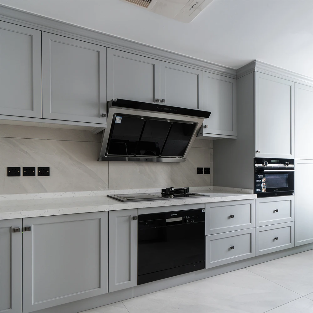 Modern Modular Set Kitchen Cabinet Stainless Steel Solid Wood MDF Carcase Door Panel Granite Faucet Drawer Slide Backsplash