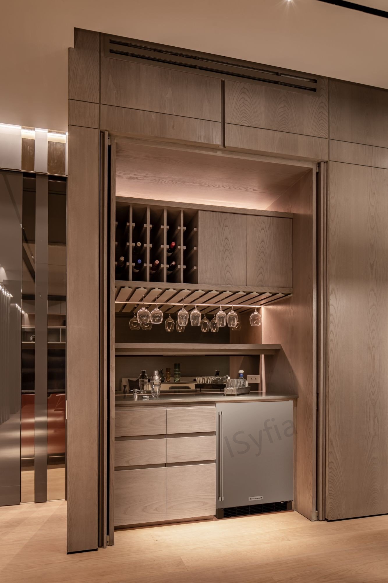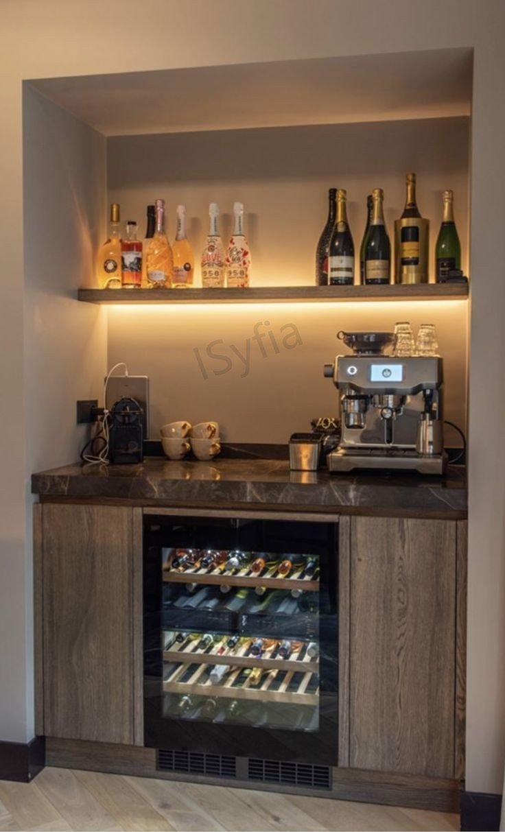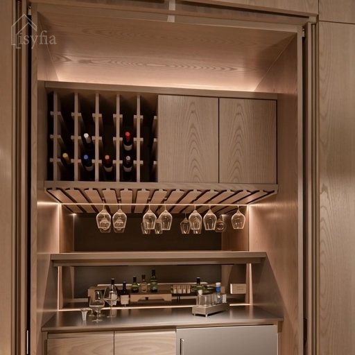 OEM Customized Wood Wine Bar Cabinet with Unique Display for Home Living Room or Wine Cellar Wood Panel Style Furniture