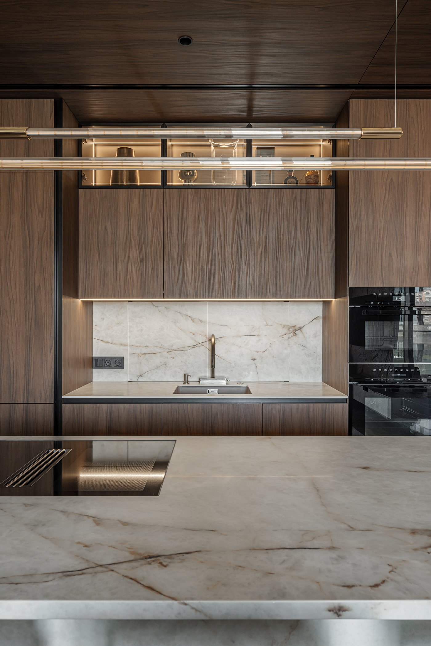 Professional Modern Solid Wood Modular Kitchen Cupboard Island Unit Set One-Stop Designs for Villa Apartment Kitchen Cabinets