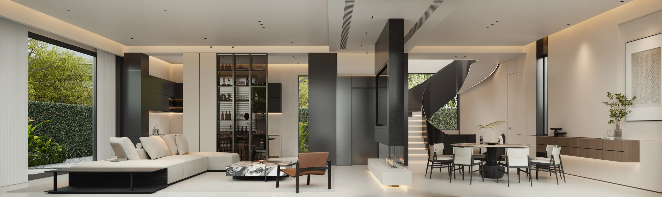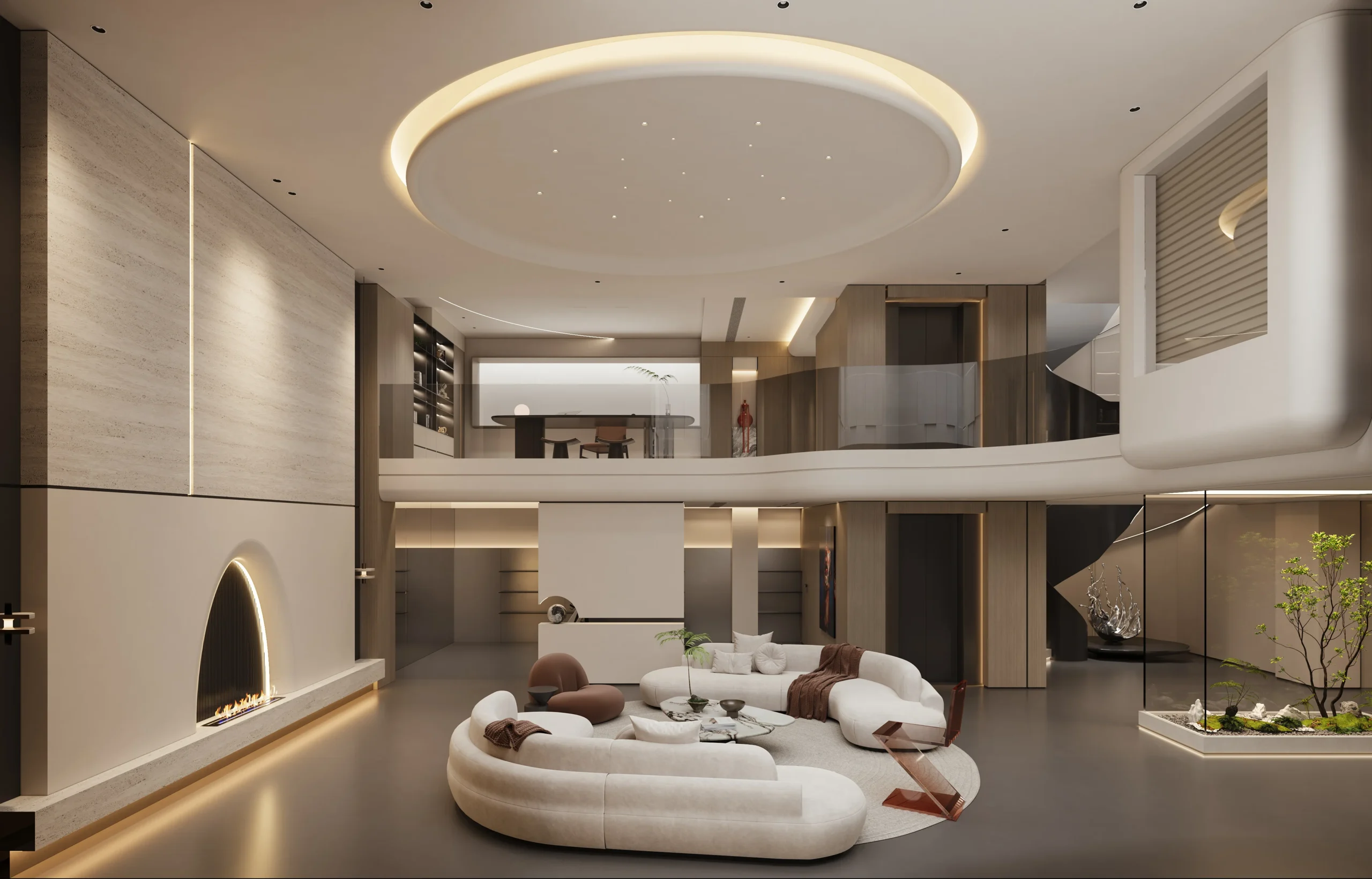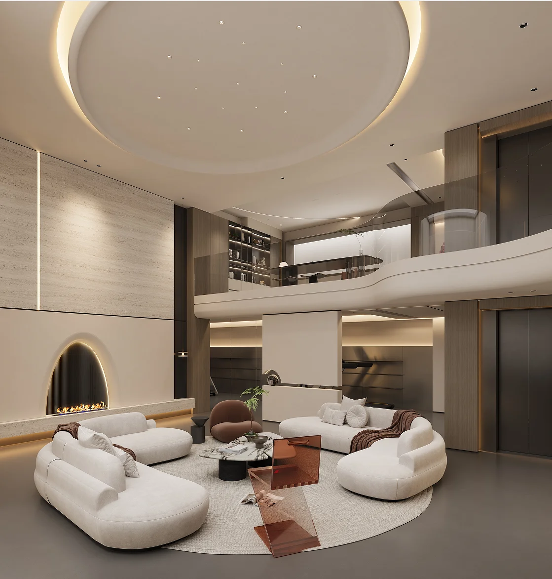 Villa Design Kitchen Cabinet Design Interior Design of High-Volume Villas Sofa Dining Table Chair Hanging Cabinet Living Room