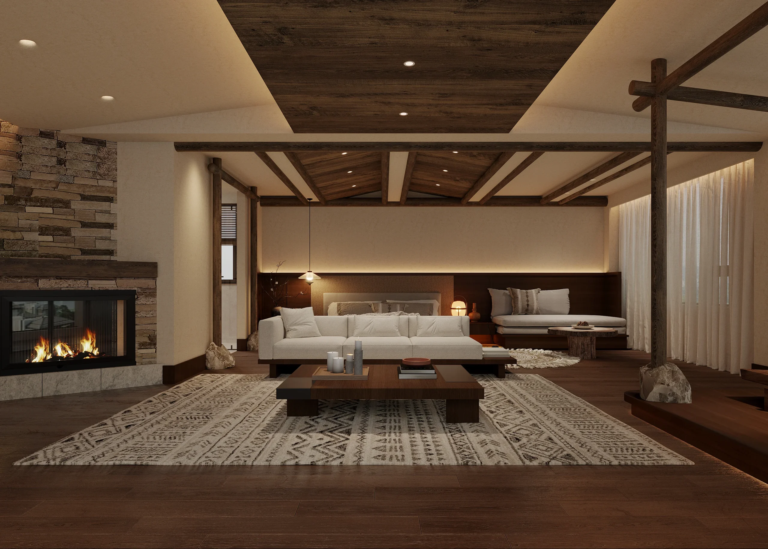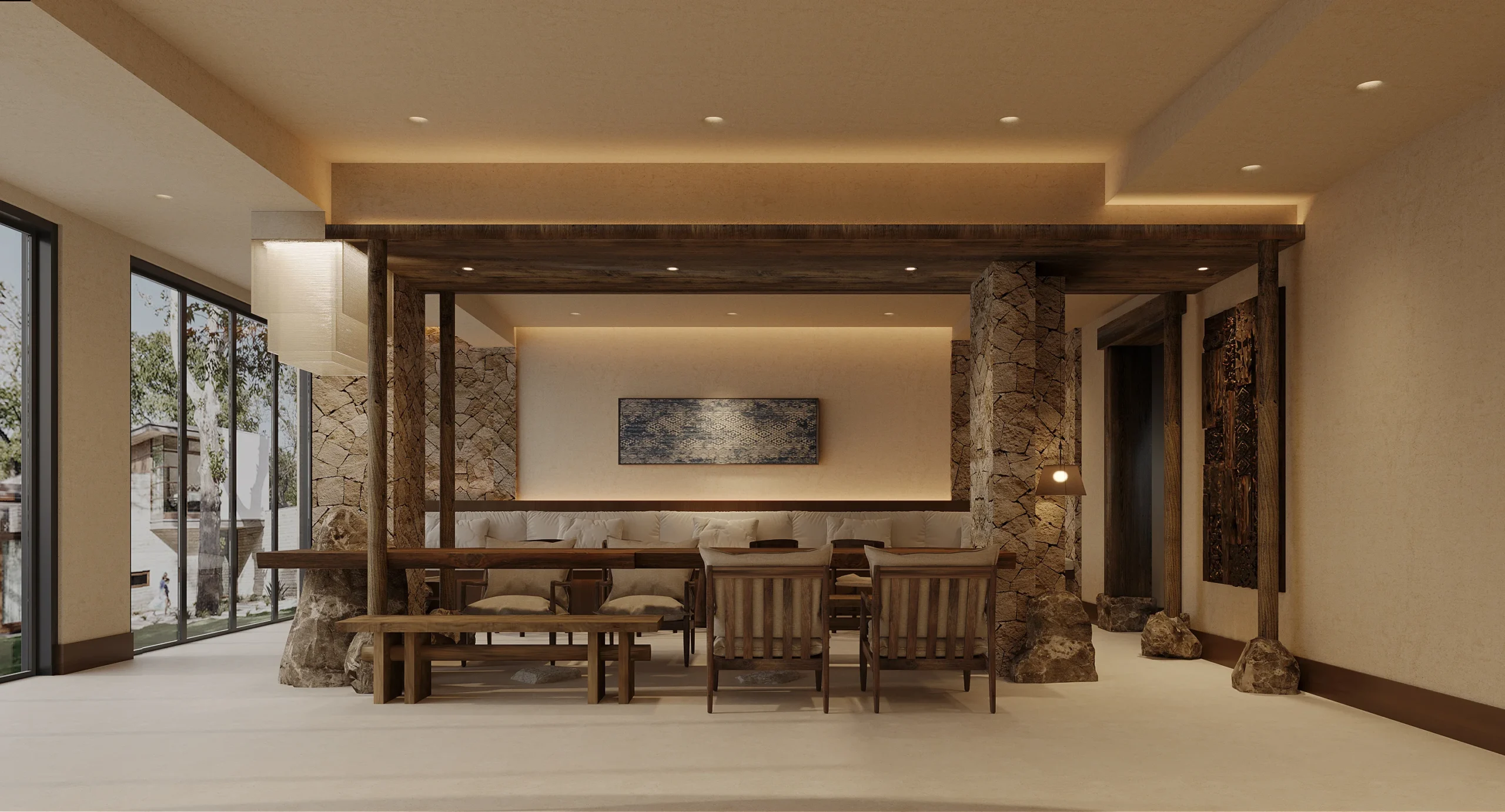 Wabi-Sabi-Style Homestay and Hotel Design Featuring Log Wood Minimalism and Warm Color Tones Custom Furniture